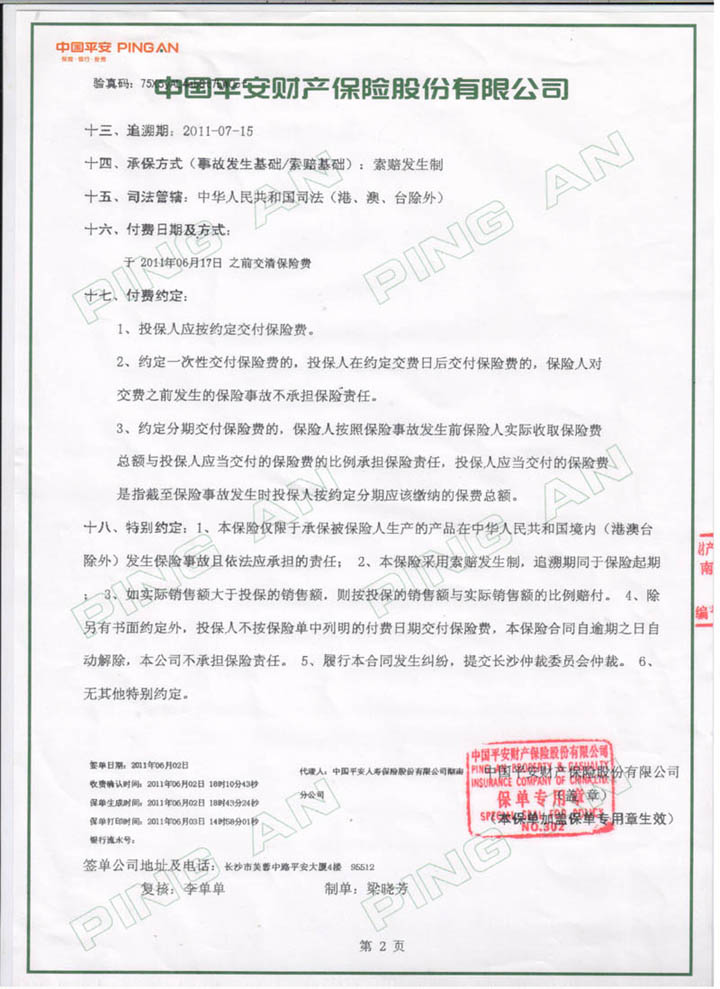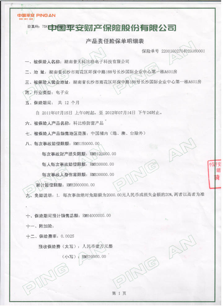 中國平安保險質(zhì)量全程承保防雷產(chǎn)品